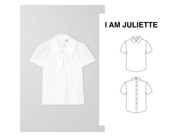 This preppy shirt from Red Valentino is so gorgeous and I love it! One of my most-made shirt patterns, the Juliette from I Am Patterns, would be perfect to recreate this. I’d curve the collar and add a ruffle, plus little ruffles to the sleeves and add a zip at the back instead of buttons – or just keep the buttons as it’s those front details that are so beautiful! All that’s then needed is a straight necktie which you could then wear with other shirts, too.