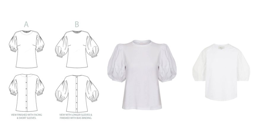 Statement shoulders have been big news for a few seasons now and they’re here to stay! Bella Loves Patterns’ Cologne blouse is up there with the more fashion-forward shirt patterns, and these shirts from Finery (centre) and 3.1 Phillip Lim (far right) echo that amazing sleeve.