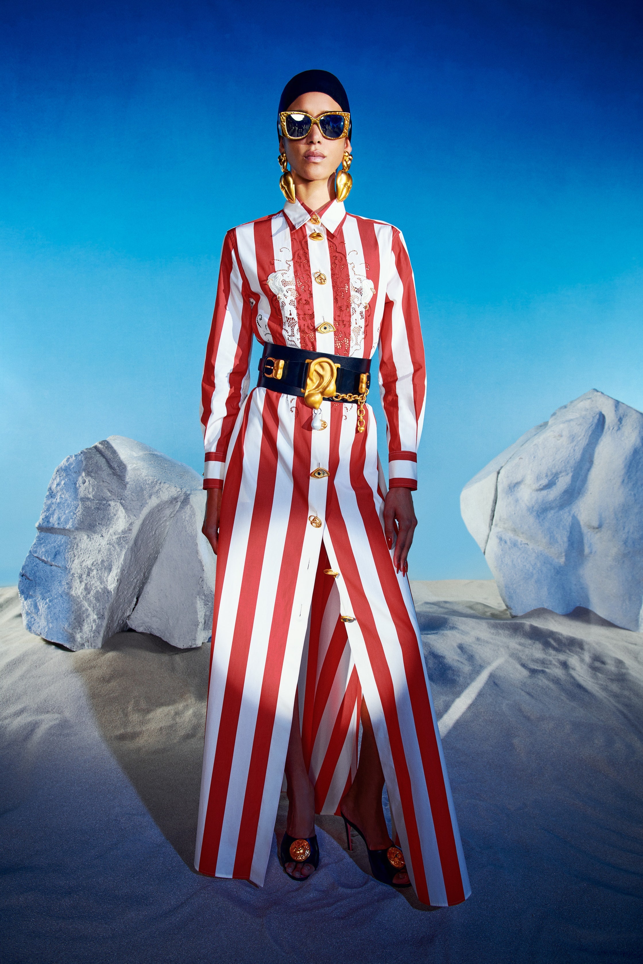 Dalston Mill Fabrics currently has a bold red and white stripe cotton poplin that would be perfect to recreate the Schiaparelli shirt dress, and it’s in black and white too if you want to go monochrome like Caroline Herrera.