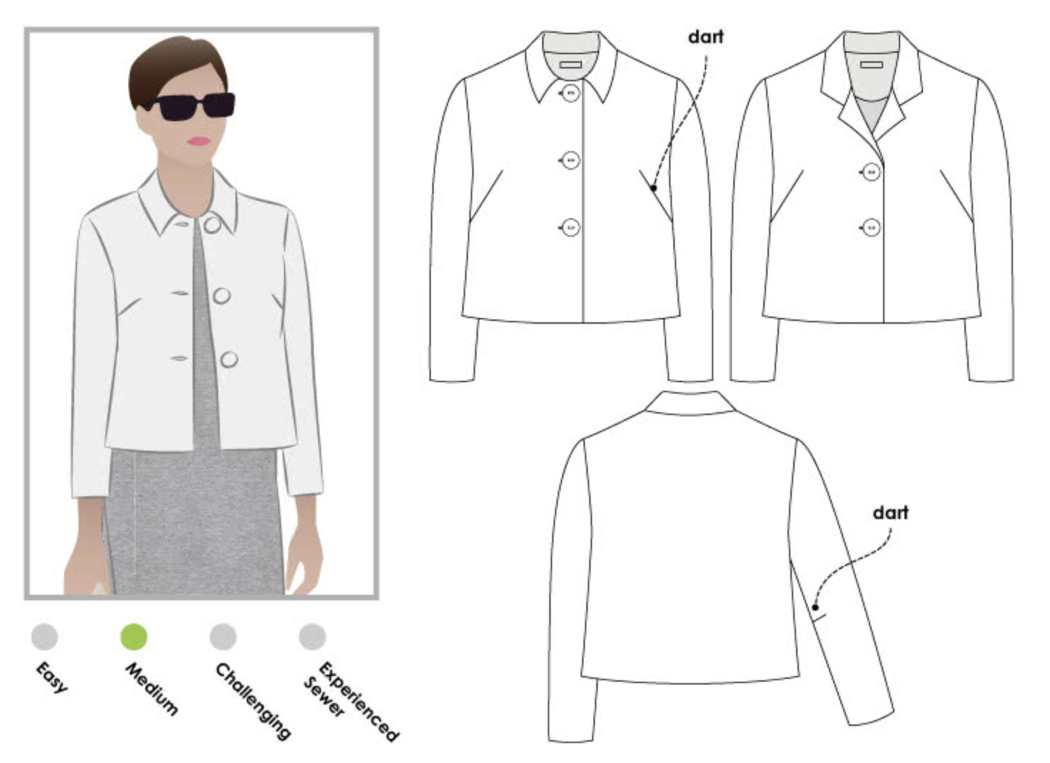 If proper blazers feel a bit too formal for you (or too complex to sew), try the Artemis jacket from I AM Patterns. It has the feel of a slouchy blazer but a more relaxed fit, plus it’s perfect for beginners.