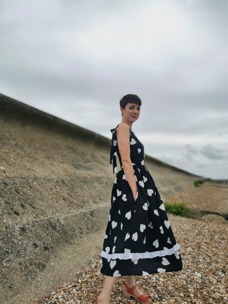 For the straps, I wanted to tie them at the back, rather than on top of the shoulder which seems to be the go-to for tie straps. To get them even, this meant making one (the one that goes over the shoulder) slightly longer than the other. My straps are around 76cm long, and they create a nice bit of drama without being over the top. The Flora Dress has quite a high back so I also chopped 5cm off the top so the tie straps would properly sit at the back rather than so near to the top of my shoulders. In hindsight, I probably could’ve gone a bit lower, so if you’re going to give this a go, 8 or 9cm should be the sweet spot.
